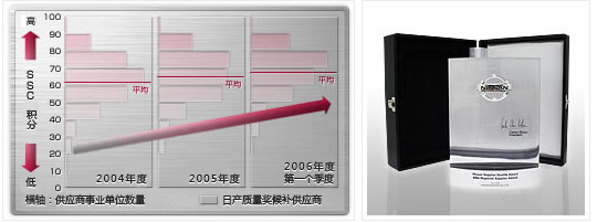日產汽車每年利用供應商計分卡對各供應商進行評估,并作為供應商整體內容進行總結。每年供應商的整體平均指數均上升。各供應商現在的位置將被報告,排位靠前的供應商也被表彰。
