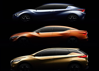 自2013年北美國際車展至今,日產汽車先后發布了Resonance、Friend-ME、Sport Sedan三款概念車,盡管目標市場與目標客戶不盡相同,但它們共享了日產汽車的未來設計元素:日產汽車“V-Motion”前臉設計,造就非凡的家族式臉譜;魅力獨具的回鏢式組合車燈,頗具未來風范; “懸浮式”車頂,將立柱凝練于輕盈的線條之間,減輕車身厚重感。這三款概念車在繪制出日產汽車下一代汽車設計藍圖的同時也開啟了日產品牌以全球化設計為主導的全新篇章。