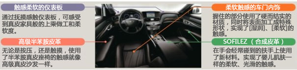 日產(chǎn)為了向顧客提供"上乘的內(nèi)飾加工",將人在看物體和觸摸物體時的感覺加以科學(xué)分析并數(shù)據(jù)化,應(yīng)用于內(nèi)飾的技術(shù)開發(fā)。