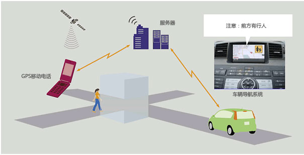 此系統(tǒng)通過車輛與行人所攜帶的移動(dòng)電話之間的通信,有助于減少在駕駛員的視線被阻礙的區(qū)域內(nèi)與行人發(fā)生交通事故。